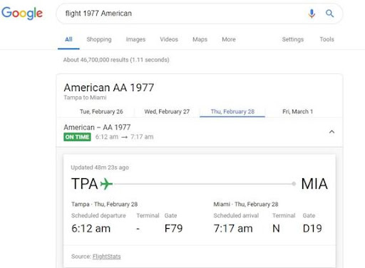 Când trebuie să accesezi informațiile zborurilor, te cam grăbești. Fie te pregătești să ajungi la aeroport sau aștepți pe cineva să fie gata. Să aștepți încărcarea unor pagini în browser s-ar putea să-ți fure mult timp. În schimb, poți obține rezultatele zborurilor direct de la Google.